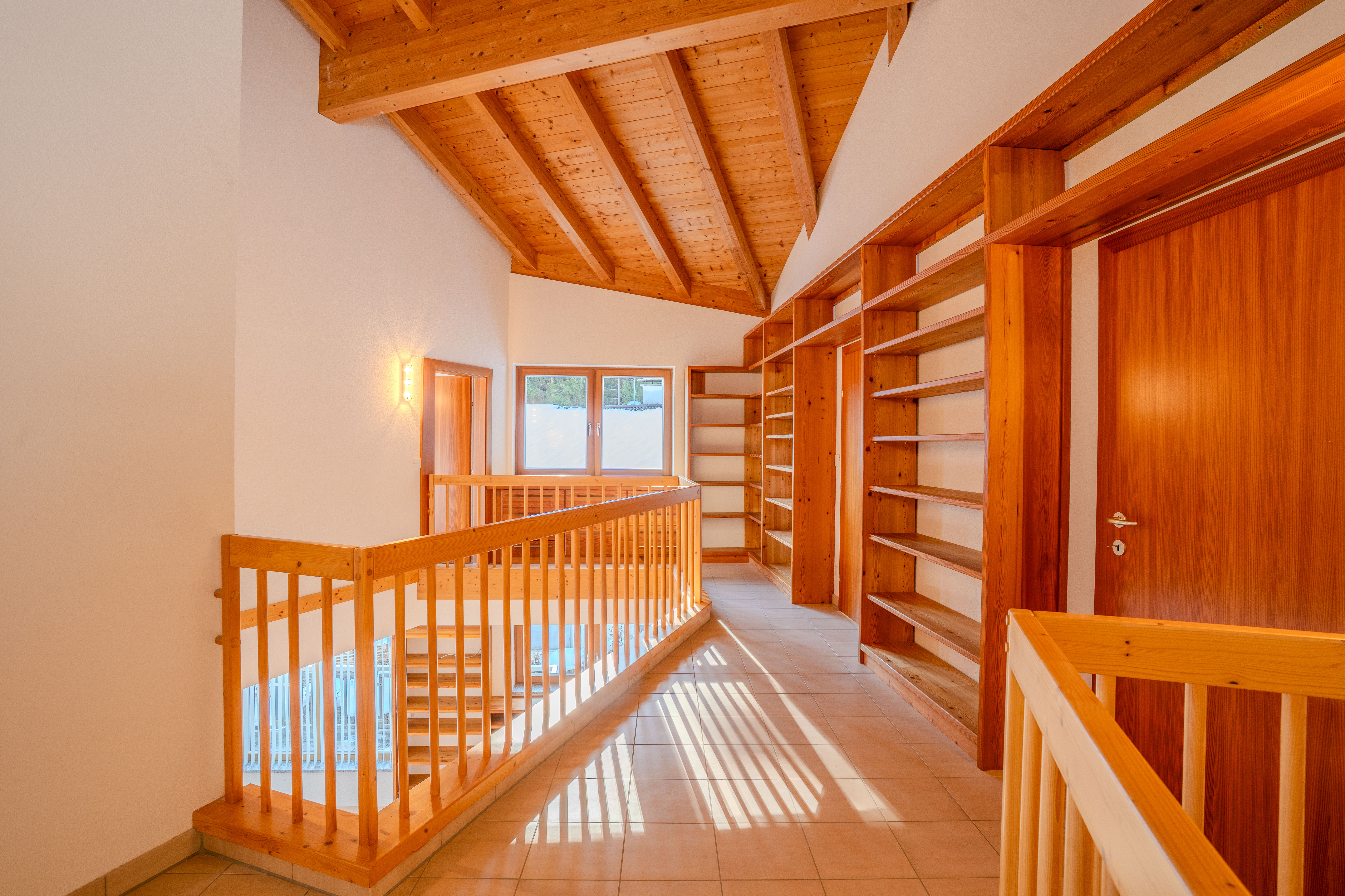 Dieses 2005 errichtete Einfamilienhaus besticht durch seine hochwertige, massive Bauweise in Hanglage und bietet großzügige, lichtdurchflutete Wohnflächen auf mehreren Ebenen. Das Gebäude umfasst Untergeschoss, Erdgeschoss und Obergeschoss mit einer Gesamtwohnfläche von ca. 268,89 m². Zusätzlich stehen ein Heizraum, Pellets-Lager und eine Doppelgarage zur Verfügung. Die offene Raumgestaltung mit Sichtdachstuhl und Galerie schafft ein luftiges, modernes Wohngefühl und ermöglicht einen harmonischen Blick von der Galerie ins Erdgeschoss.